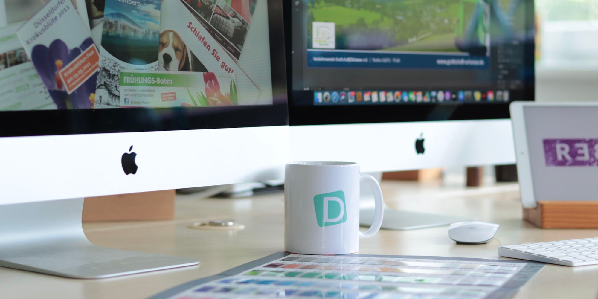 Individuelle Gestaltung Deiner Werbedrucksachen inklusive Texten und Fotos. Gerne kümmern wir uns auch um den Druck.
