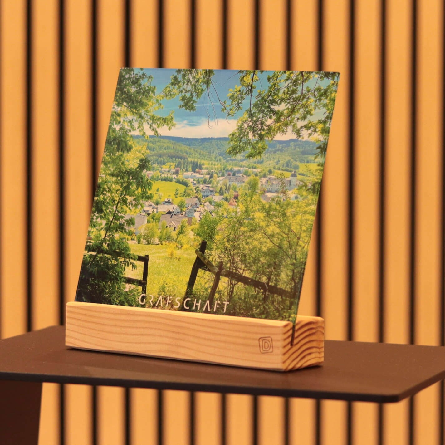 Mit unserem Holz Bilderhalter wird jedes Acrylbild zum echten Blickfang. Der Wow-Effekt kommt, wenn Licht von hinten einfällt, dann erstrahlt das halbtransparente Acrylglas in besonderem Glanz.
