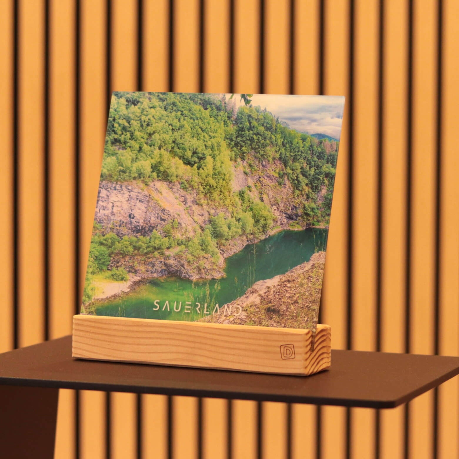 Im Lieferumfang ist das Sauerland-Heimat-Motiv zusammen mit dem Standbildhalter enthalten.